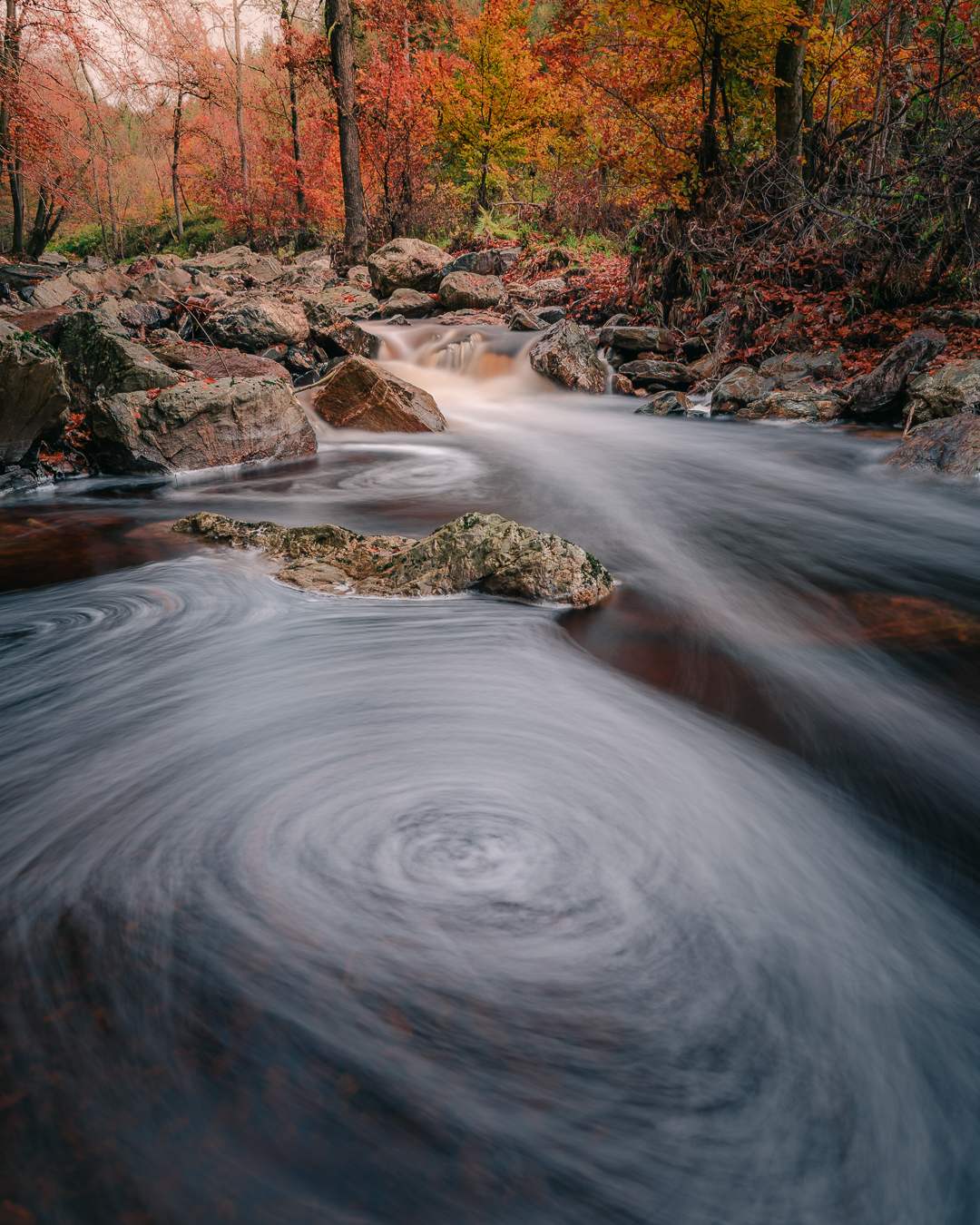 Tip: Zeker een aanrader in de herfst, wanneer het bos prachtig oranje kleurt, net als het water van de rivier. Kom op tijd of door de week, de mooie omgeving lokt vele mensen.