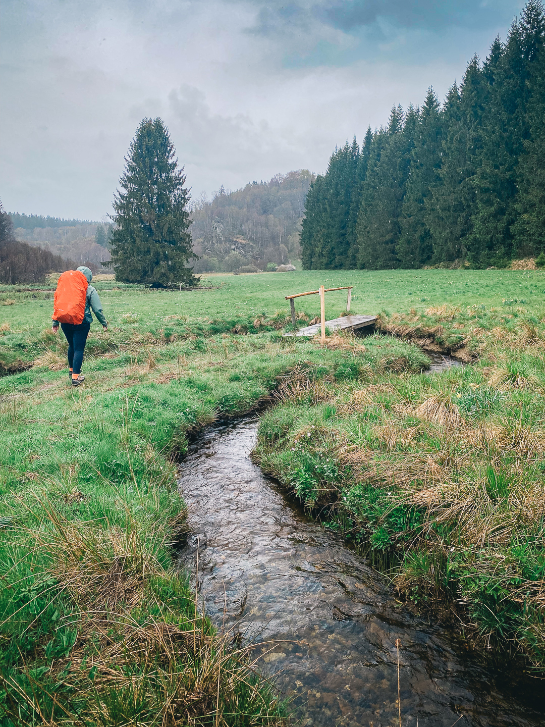 Start op een kleine parking in de buurt van Rocherath. Vandaar gaat het richting het militaire domein van Elsenborn. Opgelet: deze wandeling kan enkel gedaan worden indien er geen militaire oefening plaatsvindt in Elsenborn (Meer info, onder militaire schietoefeningen > agenda). Vandaar gaat het naar Rocher Bieley en tot aan de camping in Monschau. De tweede dag een stukje langs dezelfde weg terug tot uit Monschau om nadien via een andere route terug naar de parking te gaan.