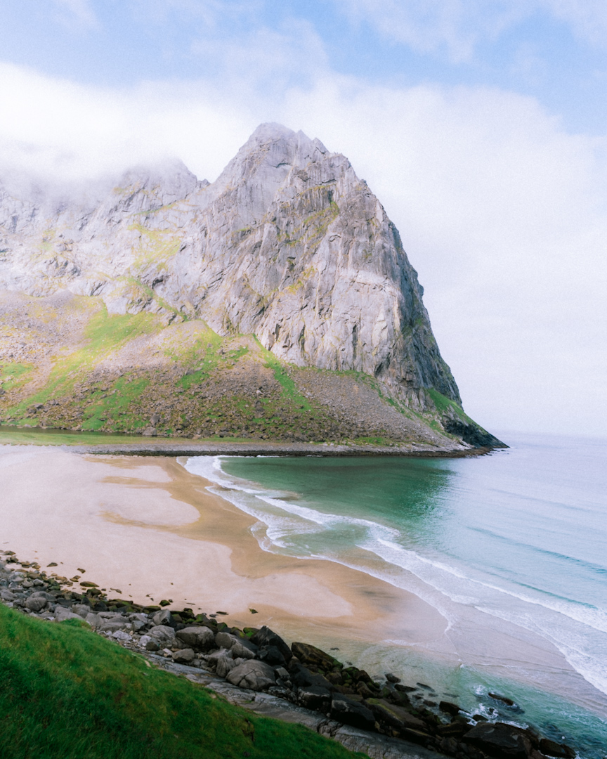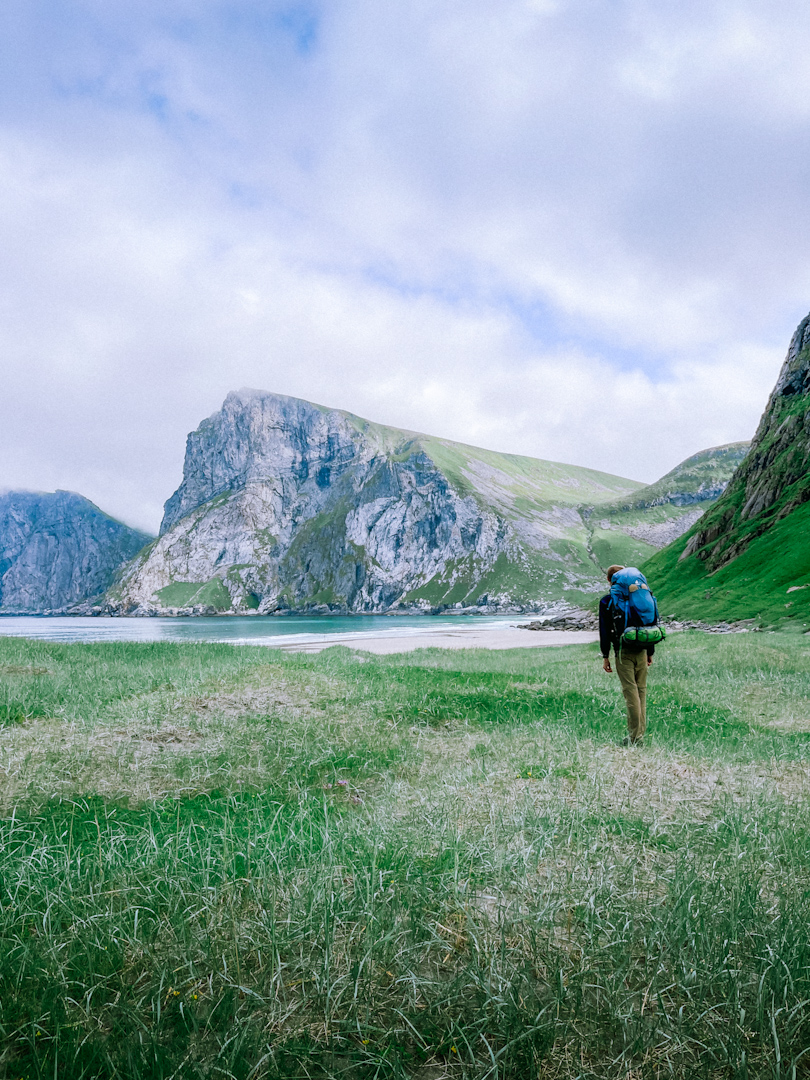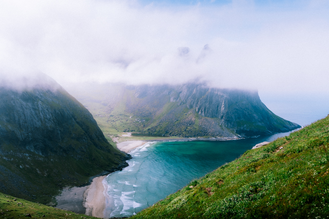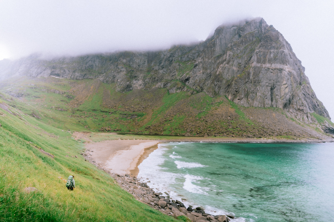 "The hike to Kvalvika Beach and Ryten Summit on Norway's Lofoten Islands is an unforgettable adventure, blending stunning coastal scenery, dramatic mountain views, and the serene experience of camping on a pristine beach. This hike offers a perfect balance of natural beauty and outdoor challenge, making it a must-do for any hiking enthusiast visiting the region. The hike to Kvalvika Beach is renowned for its striking coastal landscapes. Starting from the trailhead near the village of Fredvang, the path winds through verdant hills and rocky outcrops, gradually revealing the turquoise waters and golden sands of Kvalvika Beach. The beach, framed by towering cliffs and rugged peaks, feels like a hidden gem. The contrast of the lush green meadows, white sand, and blue sea creates a breathtaking panorama that is quintessentially Lofoten. The trail is moderately challenging, with some steep and rocky sections that require careful footing. It's well-marked and manageable for most hikers with a reasonable level of fitness. The hike to Kvalvika Beach takes about 1-2 hours, depending on your pace and the number of photo stops you make along the way. Camping on Kvalvika Beach is a highlight of the hike. The beach offers several flat spots for pitching a tent, allowing you to fall asleep to the sound of waves and wake up to stunning coastal views. The sense of solitude and connection with nature is profound, especially as the sun sets and the sky transitions to the deep hues of the Arctic night. Remember to follow Leave No Trace principles to keep this beautiful spot pristine. For those seeking an additional challenge, the hike to Ryten Summit is highly recommended. From Kvalvika Beach, the trail ascends steeply towards the summit, offering panoramic views of the beach below and the surrounding coastline. The climb is strenuous but rewards hikers with some of the most spectacular vistas in the Lofoten Islands. On a clear day, you can see for miles, with the dramatic peaks and fjords stretching out in every direction. The area is rich in wildlife, with opportunities to spot sea eagles, otters, and a variety of seabirds. The flora is equally diverse, with the coastal environment supporting unique plant life adapted to the harsh conditions. In summer, the meadows are dotted with wildflowers, adding to the visual appeal of the hike. The hike to Kvalvika Beach and Ryten Summit is an unparalleled adventure that showcases the raw beauty of the Lofoten Islands. Whether you're camping on the secluded beach or standing atop the summit, the experience is deeply immersive and rewarding. This hike is ideal for those looking to explore one of Norway's most stunning landscapes, offering a perfect blend of coastal charm, alpine adventure, and serene wilderness."