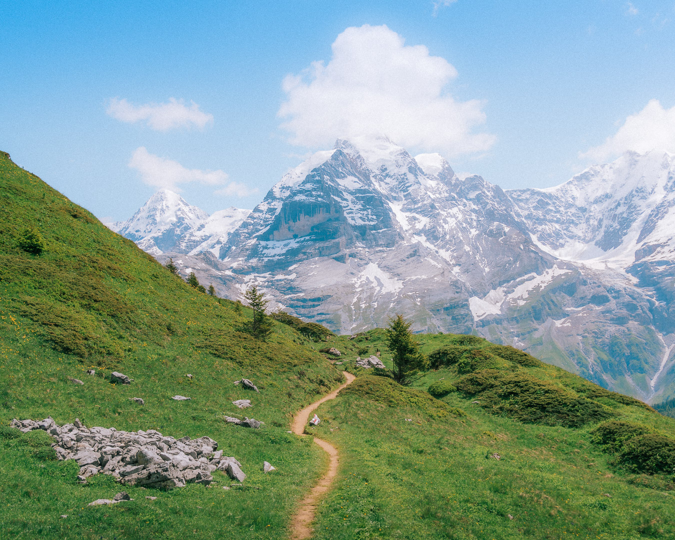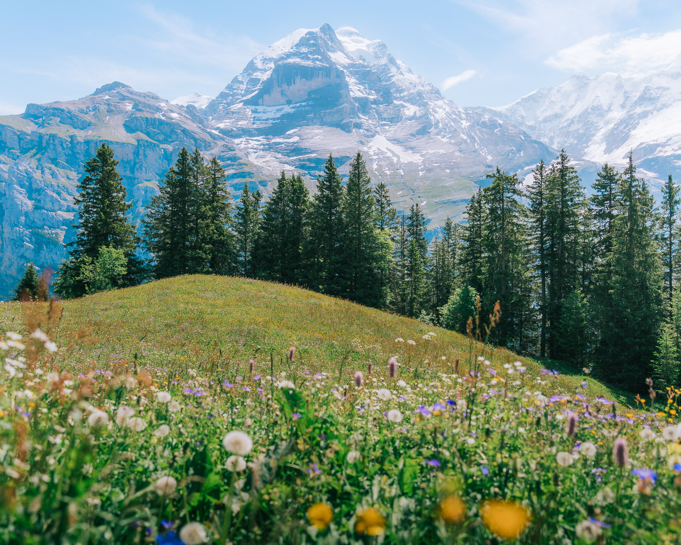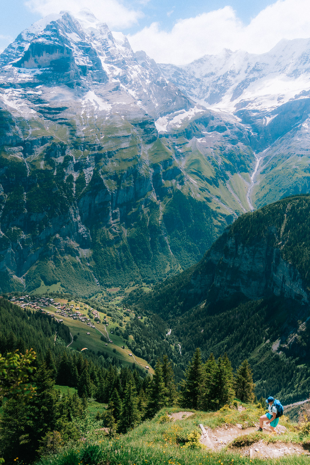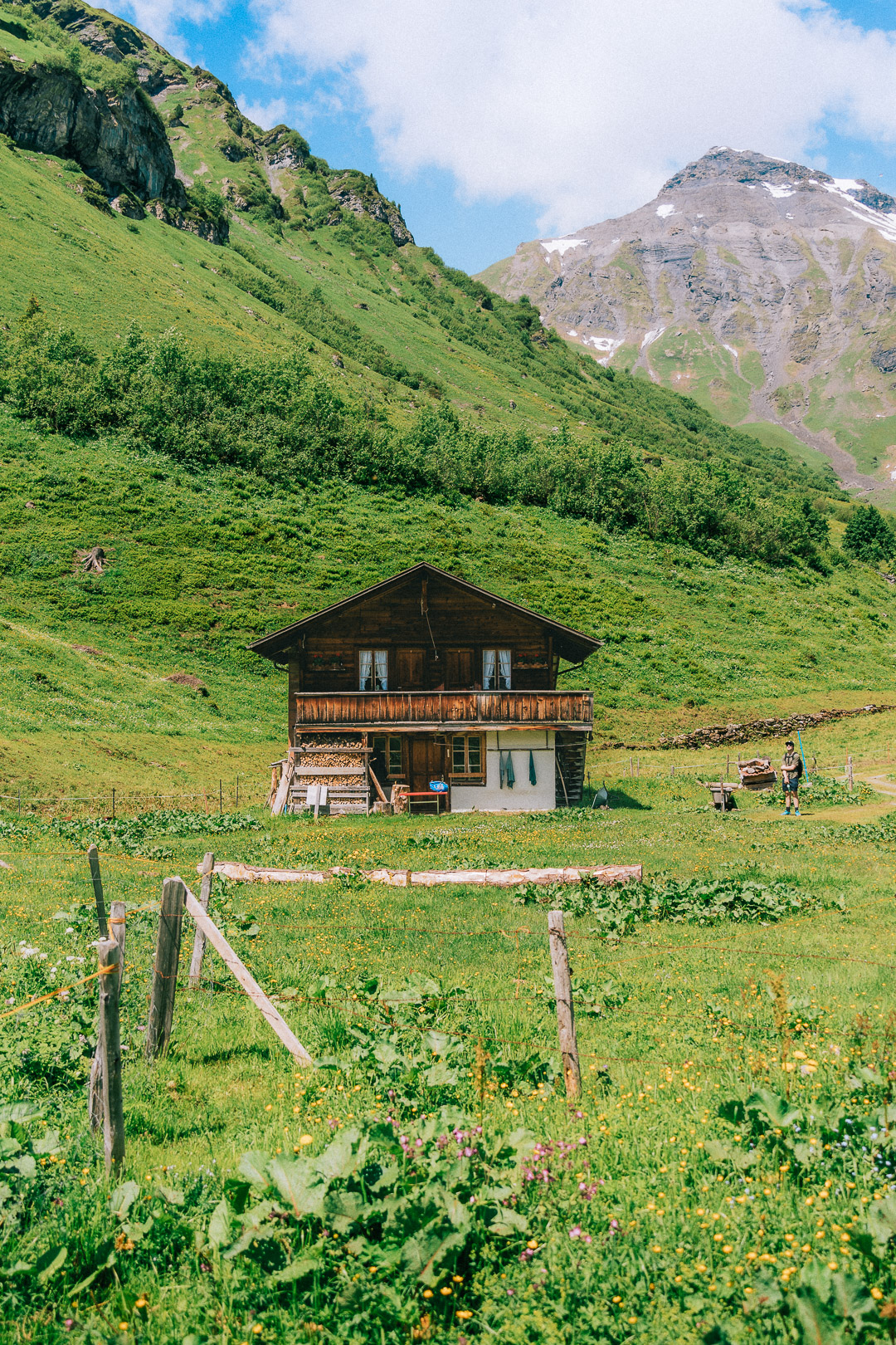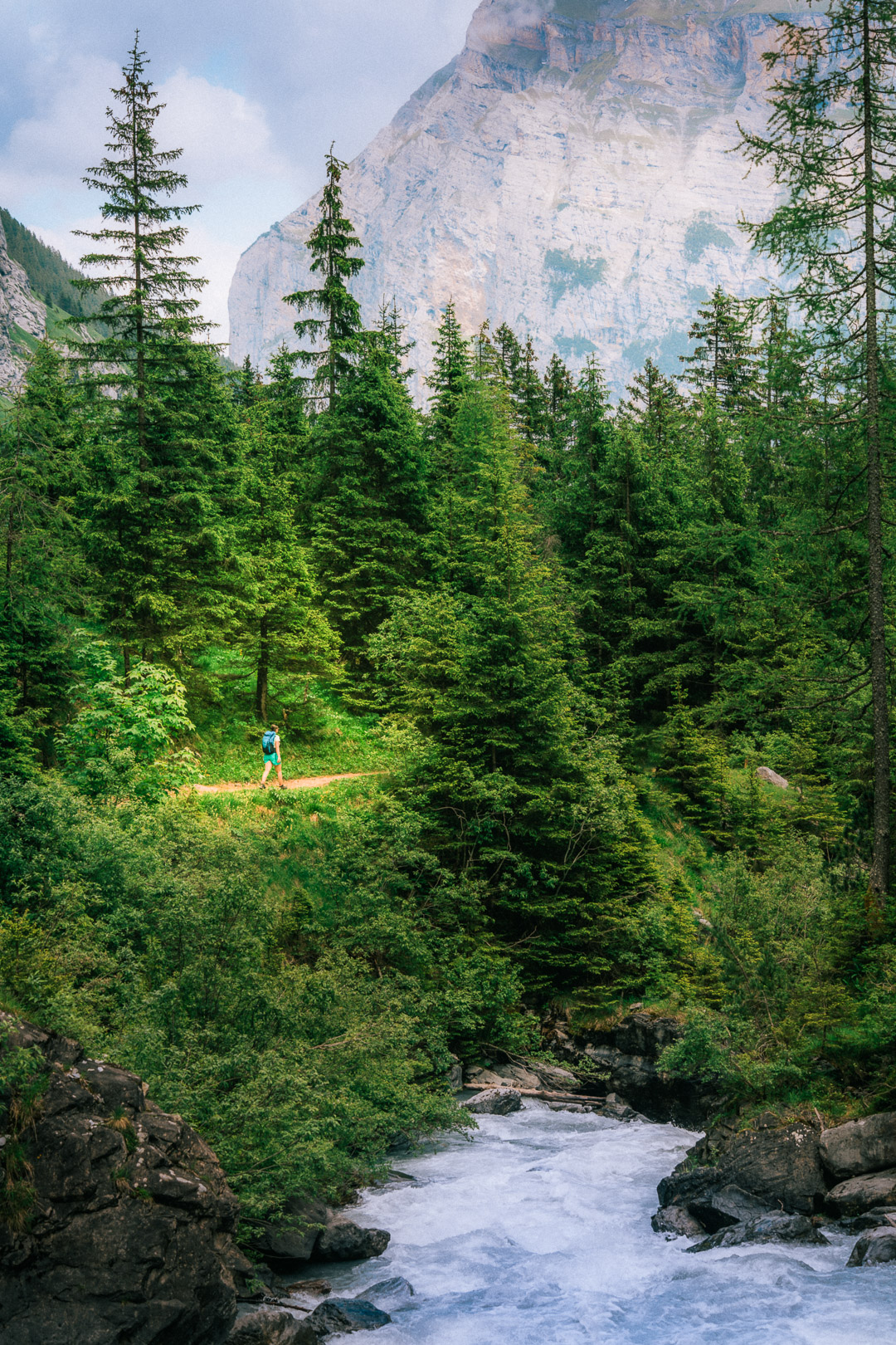 Start from the top of the cable car in Mürren and follow the signs of the Northface trail or towards the Rotstokhütte. Before doing this, however, Mürren is a really beautiful town and relatively popular to visit, so a quick detour and stroll in town is recommended. Once you leave town and start hiking, the crowds quickly dissappear. Initially, the path stays relatively level and crosses some beautiful alpine meadows. Soon after crossing the Schiltenbach, and passing by Spielbodenalp, a short but strenuous steeper section presents itself. After having conquered this section, the path stays relatively level until the hut. Views along this section are truly amazing. From the hut, go back a bit and take the descending path. Cross a little mountain stream and head into the forest. Descend until arriving at the Sefi-Litschena river. Follow the river until Gimmewald. Just before arriving there is yet another small ascent.